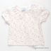 Футболка прямого силуэта с рукавом-фонариком застегивается на две кнопки на левом плечике.