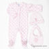Комплект состоит из комбинезона, шапочки и слюнявчика.