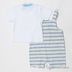 Детали: футболка с коротким рукавом застегивается на кнопки на плече, комбинезон с отстегивающимися спереди бретелями, застегивается по бокам на кнопки, декоративная аппликация