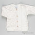 Кофта прямого силуэта с длинным рукавом застегивается на пуговицы. Манжеты и низ изделия - трикотажные резинки. Изделие украшено принтами.