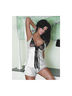 Комплект из атласной ткани, состоящий из маечки "baby doll" и шортиков. Спереди на маечке вставки из вышитой сетки и украшение в виде банта из лент черного цвета. Шортики по талии на резинке. Бретели регулируются