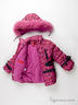 Куртка утеплена холофайбером, флисовый подклад. Капюшон отстегивается, мех отстегивается, ворот-стойка. Внутренняя трикотажная манжета рукава. Застежка на молнию. Два нагрудных кармана, один внутренний карман. Изделие украшено оборками и рисунками.