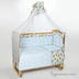 • Бортик 360х42см, пододеяльник140х110см, простынка на резинке150х90см, наволочка 60х40см, одеяло140х110см, подушка 60х40см, балдахин 420х165см.