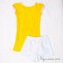 Детали: футболка - круглый вырез; короткий рукав; контрастная окантовка; на полочке аппликация; шорты - пояс на резинке