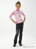 Кофта прямого кроя с длинным рукавом. За счет необычных рукавов создается эффект двойки. Полочка украшена декоративной аппликацией.