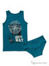 Комплект состоит из двух предметов: майка и плавки. Майка на широких бретелях с округлым вырезом. Контрактная прострочка швов. Плавки на эластичном поясе для более комфортной посадки. Отличный вариант для Вашего ребенка.