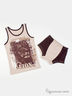 Комплект из двух предметов: майка и шорты. Майка на широких бретелях с округлым вырезом. Спереди модель декорирована контрастным принтом "лев". Шорты на эластичном поясе. Отличный вариант на каждый день.