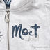 Толстовка прямого кроя с капюшоном застегивается на молнию. В манжеты и нижнюю часть изделия вставлены резинки. Два передних кармана. Передняя часть изделия украшена аппликациями и множеством разных декоративных элементов.