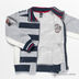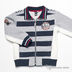 Толстовка прямого кроя с длинным рукавом застегивается на молнию. Ворот, манжеты и низ изделия - трикотажные резинки. Теплый внутренний начес. Контрастные вставки. Декоративные нашивки и аппликации.