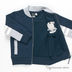 Толстовка прямого кроя застегивается на молнию. Ворот-стойка, манжеты и низ изделия - трикотажные резинки. Два передних кармана. Передняя часть изделия украшена аппликациями и вышивкой. Аппликация на спинке.