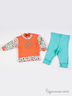 Комплект состоит из джемпера и штанишек. Яркий, веселый джемпер декорирован симпатичной печатью, сочетающейся с цветом штанишек. Для удобства надевания джемпера на плече и воротничке установлены две кнопочки. Штанишки фиксируются на мягкой резинке. Комплект очень удобен для повседневной носки.