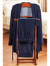 Мужская удобная одежда для дома - велюровый мужской комплект Diego. Верх: жакет-кимоно, с длинными рукавами и поясом, низ: брюки прямого кроя на резинке. Длина жакета по спинке - 90 см. Рукава отделаны широкими манжетами. Мягкий, комфортный костюм!