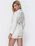 Комплект-двойка из тонкой льняной ткани. Пиджак прямого кроя с декоративными клапанами. Шорты с высокой посадкой с эластичной деталью в поясе. В боковых швах удобные карманы. Комплектуется поясом из основной ткани.