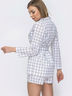 Белый комплект-двойка в контрастную клетку из дышащего хлопка. Пиджак прямого кроя с декоративными клапанами. Шорты с высокой посадкой с эластичной деталью в поясе. В боковых швах удобные карманы. Комплектуется поясом из основной ткани.