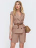 Стильный комплект из дышащего льна в трендовом цветовом исполнении. Двубортный жакет с рукавом-крылышко и декоративными клапанами спереди. Шорты с завышенной талией и вместительными карманами по бокам. Застегиваются на молнию и пуговицу. Ремень в комплект не входит.