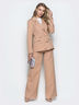 Стильный комплект из костюмной ткани. Двубортный пиджак приталенного силуэта с отложным воротником и крупными пуговицами. Широкие брюки прямого кроя с вместительными карманами в боковых швах. Застегиваются на молнию и пуговицу спереди.