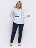 Стильный комплект в классическом стиле. Белая блузка без застежек с декоративным поясом. Брюки контрастного цвета с карманами в боковых швах, по талии эластичная деталь.