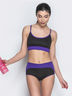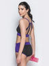Спортивный комплект для занятий фитнесом и полденсом. Состоит из короткого топа на узких бретелях с оригинальным плетением сзади и высоких шорт с контрастным поясом.