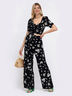 Брючный комплект из штапеля с цветочным рисунком. Укороченный топ на запах с вшитым поясом и лёгкими буфами на рукавах. Расклешенные брюки с завышенной талией и карманами по бокам. Сзади пояс присобран на резинку. Лёгкая дышащая ткань подарит максимальный комфорт в летнее время.