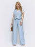 Монохромный брючный комплект с жилетом. Брюки свободного кроя со «стрелками» и защипами у пояса. Укороченный жилет с пуговицами вдоль всей длины.