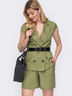 Стильный комплект из дышащего льна в трендовом цветовом исполнении. Двубортный жакет с рукавом-крылышко и декоративными клапанами спереди. Шорты с завышенной талией и вместительными карманами по бокам. Застегиваются на молнию и пуговицу. Ремень в комплект не входит.
