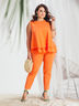 Женственный комплект с шифоновой двухслойной блузкой. Брюки из костюмной ткани с карманами по бокам.