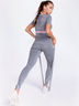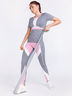 Комплект для фитнеса – благородное сочетание трех цветов, прилегающего силуэта отлично подчеркивает стройность фигуры. Благодаря плотной хорошо растяжимой ткани комплект очень удобен и приятен в носке. Лосины с фигурными подрезами и декоративным плоским кантом на широком поясе с эластичной резинкой будут отличным дополнением к удлиненной футболке с коротким рукавом и круглым вырезом.