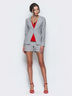 Практичный костюм в классическом стиле. Жакет с длинными рукавами и функциональными карманами. Застегивается на большую пуговицу. Шорты с подворотом и карманами в боковых швах. Застегиваются на молнию и пуговицу.