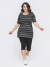 Практичный комплект из приятной к телу вискозы. Удлинённая футболка в крупную полоску + бриджи.