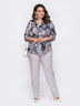 Стильный комплект-двойка. Блузка свободного кроя с V-образным вырезом горловины. Рукав ¾ зафиксирован шлёвкой. Брюки с эластичной деталью в поясе. Для удобства предусмотрены по бокам карманы.
