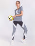 Комплект для фитнеса – благородное сочетание трех цветов, прилегающего силуэта отлично подчеркивает стройность фигуры. Благодаря плотной хорошо растяжимой ткани комплект очень удобен и приятен в носке. Лосины с фигурными подрезами и декоративным плоским кантом на широком поясе с эластичной резинкой будут отличным дополнением к удлиненной футболке с коротким рукавом и круглым вырезом.