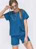 Стильный комплект-двойка. Футболка свободного кроя с круглой горловиной. Шорты с эластичной деталью по талии и карманами по бокам.