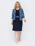 Комплект с платьем приталенного силуэта и принтованным жакетом с контрастной обтачкой. Втачной пояс платья комплиментарен принту жакета, что повышает завершенность образа. Платье со шлицей сзади, застегивается на молнию.