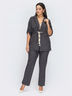 Стильный костюм-двойка из костюмной ткани. Пиджак свободного кроя. Брюки стандартной посадки, по бокам предусмотрены карманы. Сзади на талии эластичная деталь.