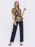 Стильный комплект-двойка. Блузка свободного кроя с коротким рукавом. Брюки со стандартной посадкой, застёгиваются на пуговицу и молнию.
