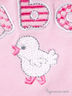 Боди с коротким рукавом застегивается на классическую боди-застежку на кнопках. Изделие украшено рисунками.