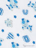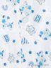 Комбинезон с длинным рукавом застегивается на кнопки от выреза горловины, застежка расходится в две стороны по шаговому шву и спускается до формованной стопы. Изделие украшено рисунками.