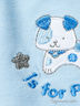 Слюнявчик с застежкой на кнопку украшен нашивкой и вышивкой.