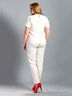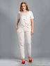 Великолепный костюм, состоящий из блузы и брюк. Блуза декорирована небольшим узором спереди, имеет короткие рукава и фигурный вырез горловины. Брюки зауженного кроя с карманами. Отличный вариант на каждый день.