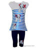 Комплект состоит из 2 предметов: туника, лосины. Туника с коротким рукавом и округлым вырезом горловины. Туника украшена принтом и перламутровыми полосками, лосины украшены принтом. Прекрасная практичная вещь для повседневного гардероба.