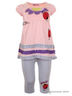 Комплект состоит из 2 предметов: туника, лосины. Туника с коротким рукавом и фигурным вырезом горловины. Лосины укороченные. Комплект украшен аппликацией. Отличный вариант на каждый день.
