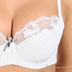 Изящный женский комплект состоящий из трусиков стрингов и бюстгальтера классической формы. Бюстгальтер застегивается на металлические крючки, имеет поролоновые чашки. Декорирован кружевными вставками и принтом - полоска, эластичные несъемные бретели регулируются по длине.