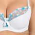 Изящный женский комплект состоящий из трусиков слипов и бюстгальтера классической формы. Бюстгальтер застегивается на металлические крючки, имеет поролоновые чашки. Декорирован кружевными вставками, эластичные несъемные бретели регулируются по длине.