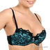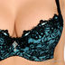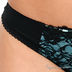 Изящный женский комплект состоящий из трусиков стрингов и бюстгальтера Push up. Бюстгальтер застегивается на металлические крючки, поролоновые чашки дополнены съемными поддерживающими вкладками, декорирован кружевными вставками, эластичные съемные бретели регулируются по длине.