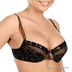 Изящный женский комплект состоящий из трусиков слипов и бюстгальтера Push up. Бюстгальтер застегивается на металлические крючки, поролоновые чашки дополнены съемными поддерживающими вставками. Декорирован кружевными вставками и золотистым напылением, эластичные съемные бретели регулируются по длине.