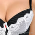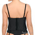 Изящный женский комплект состоящий из трусиков стрингов и корсета с подвязками. Корсет застегивается на металлические крючки, поролоновые чашки дополнены поддерживающими вкладками, декорирован кружевными вставками, эластичные съемные бретели регулируются по длине.