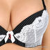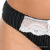 Изящный женский комплект состоящий из трусиков стрингов и бюстгальтера Push up. Бюстгальтер застегивается на металлические крючки, поролоновые чашки дополнены съемными поддерживающими вкладками. Декорирован кружевными вставками, эластичные съемные бретели регулируются по длине.