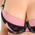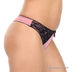 Изящный женский комплект состоящий из трусиков стрингов и бюстгальтера Push up. Бюстгальтер застегивается на металлические крючки, поролоновые чашки дополнены съемными поддерживающими вкладками, декорирован кружевными вставками, эластичные съемные бретели регулируются по длине.