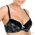 Изящный женский комплект состоящий из трусиков бразильян и бюстгальтера Push up. Бюстгальтер застегивается на металлические крючки, поролоновые чашки дополнены поддерживающими вставками, декорирован кружевными вставками и оригинальным принтом, эластичные съемные бретели регулируются по длине.