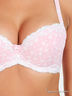 Оригинальный бюстгальтер Push up на косточках с поролоновыми чашками. Выполнен из тонкой шелковистой ткани, внутренняя часть чашек выполнена из мягкого хлопкового материала. Несъемные эластичные бретели регулируются по длине. Нижняя часть чашек дополнена съемным уплотнителем. Застегивается на два крючка в три позиции. Декорирован кружевными вставками. Трусы - слипы средней посадки декорированы гипюровым кружевом.